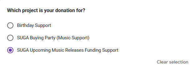 🚨Please select the - SUGA Upcoming Music Releases Funding Support - option if you wish to donate to this project.